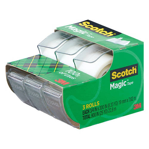 Scotch Magic Tape 3 rolls per pack 300 inches per roll ¾ inch width Magic tape has a matte finish whereas gift tape has a satin finish