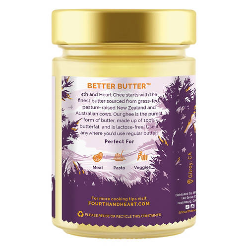 4th & Heart Garlic Clarified Butter Ghee is grass-fed and pasture-raised. With a high smoke point of 485°F, it’s perfect for cooking at high temperatures. Lactose-free and keto-certified, it adds rich flavor to your dishes without the worry. Use it to sauté vegetables or add a garlic twist to your favorite recipes. Enhance your meals with the unique taste and quality of 4th & Heart Garlic Clarified Butter Ghee.