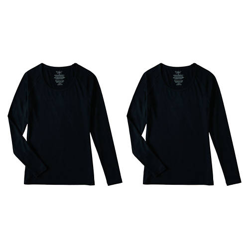 2 Pack Ladies Base Layer Crew Top - Black, L