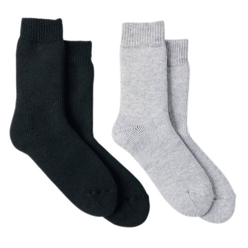 Ladies 2 Pack Brushed Winter Socks 92% Acrylic, 7% Polyester, 1% Elastane Crew style, cushioned foot and ankle Ladies size: 4-10 OEKO-TEX Certified