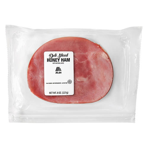 ALDI Deli Sliced Honey Ham brings a touch of sweetness to your sandwiches and salads. Fully cooked and ready to eat, this gluten-free ham is perfect for quick lunches or adding to your favorite recipes. Enjoy the simple, natural taste of honey-infused ham in every bite.
