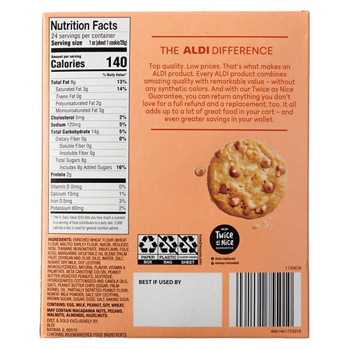ALDI Ready to Bake Peanut Butter Chip Cookie Dough is the ultimate choice for quick, delicious cookies. This dough is packed with creamy peanut butter and peanut butter chips. Just bake and enjoy warm, gooey cookies fresh from the oven. Ideal for spontaneous gatherings or satisfying midnight cravings, this ready-to-bake dough is a must-have in your freezer.