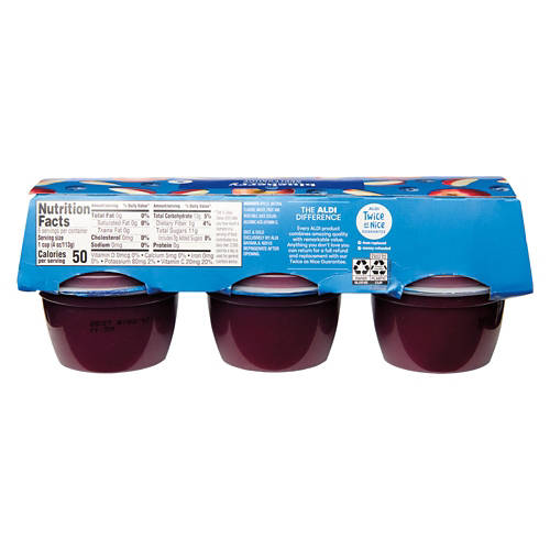 ALDI Gluten Free Blueberry Flavored Apple Sauce offers a delicious twist on classic applesauce with a burst of blueberry flavor. Enjoy it as a quick snack or add it to your breakfast. It's a smart choice for a tasty, nutritious option. Add a pack of ALDI Gluten Free Blueberry Flavored Apple Sauce to your cart today.