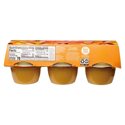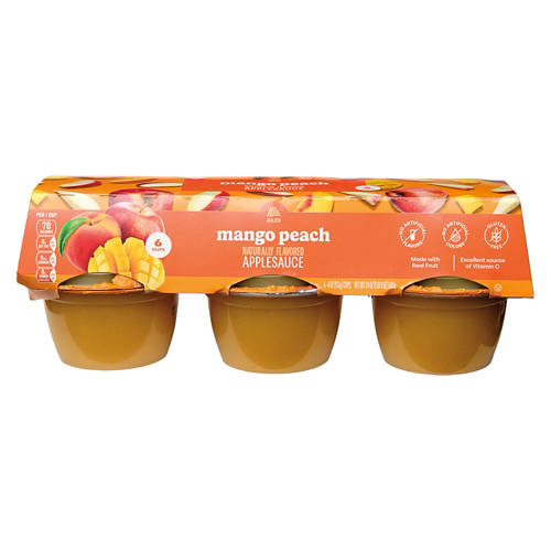 ALDI Gluten Free Mango Peach Flavored Apple Sauce is a vibrant blend of real fruit with no artificial flavors or colors. Each cup provides an excellent source of Vitamin C, making it a smart choice for a quick, fruity snack. Enjoy it on its own or as a flavorful topping for yogurt or oatmeal. Experience the delightful taste of mango and peach in every bite.