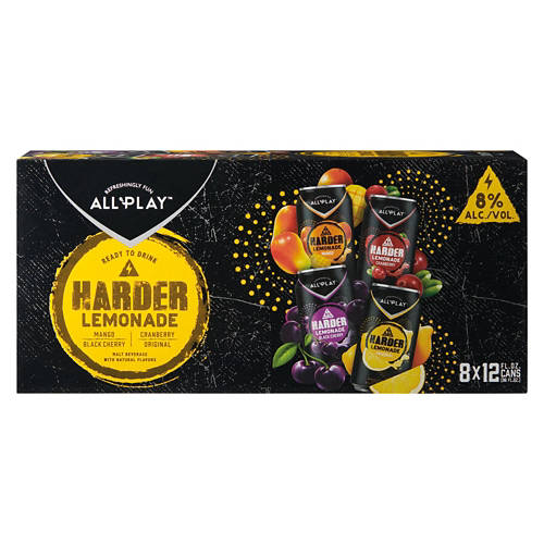 All Play Harder Lemonade Variety Pack offers a refreshing mix of Mango, Cranberry, Black Cherry and Original flavors. Each 12 fl oz can has an 8% ABV, making it ideal for gatherings or relaxing evenings. Enjoy straight from the can or over ice for a cool twist. This 8-pack ensures there's a flavor for everyone, making it a great addition to your beverage selection. Refresh your drink game with All Play Harder Lemonade.