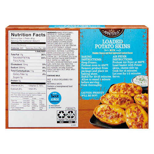 Indulge in Appetitos Loaded Potato Skins, featuring cheddar cheese and real applewood smoked bacon. Ideal for parties or a cozy night in, these savory skins make a great appetizer. Heat them up and serve with a side of sour cream for an irresistible bite. Keep frozen and cook thoroughly to enjoy this flavorful dish.