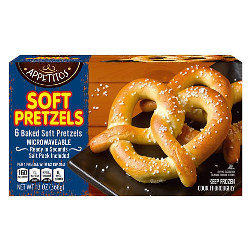 Treat yourself to a carnival favorite with these Appetitos Original Soft Pretzels! The soft, chewy pretzels are ready in seconds and come with fresh salt packets so you can customize your snack. Enjoy yours on its own, with tangy cream cheese, or with a gooey cheese dip for the perfect midday pick-me-up!