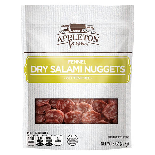 Appleton Farms Gluten Free Fennel Dry Salami Nuggets are packed with flavor. With 100 calories per serving, this salami is ideal for adding a savory touch to your charcuterie board or enhancing your favorite pasta dishes. Ready to eat, it’s a convenient protein option that’s perfect for quick meals. Elevate your culinary creations with the rich, bold taste of Appleton Farms Gluten Free Fennel Dry Salami Nuggets.