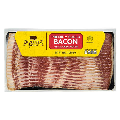 Shop for our 1 pound package of Appleton Farm Premium Sliced Bacon and discover the flavorful, salty and sizzling taste today. Bacon is traditionally a breakfast favorite, but can be added to salads, sandwiches, baked potatoes, and more. Get delicious bacon at affordable prices when you shop at ALDI.