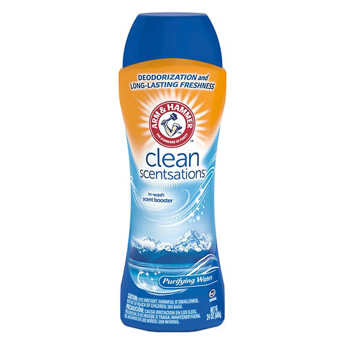 Arm & Hammer Clean Scentsations In-Wash Scent Booster Purifying Waters delivers deodorization and long-lasting freshness to your laundry. Add it to your wash for a burst of clean, refreshing scent that keeps your clothes smelling great. Ideal for all types of laundry, this scent booster ensures your fabrics stay fresh and inviting. Experience the purifying waters fragrance and elevate your laundry routine with Arm & Hammer.