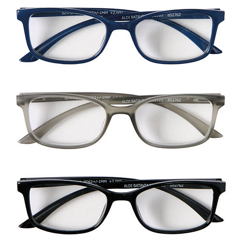3 Pack Men's Reading Glasses - Black/Blue/Grey, 2.5