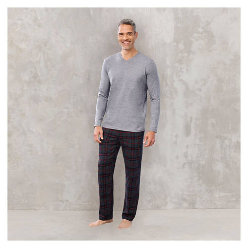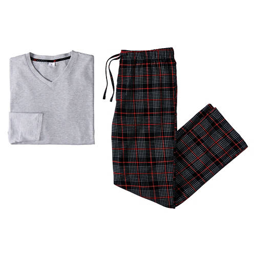 2 Piece Sleepwear Set V-neck or crew-neck, elastic waistband with drawstring, side seam pocket Light Gray Top - 90% Cotton, 10% Rayon; Bottom - 100% cotton OEKO-Tex Certified