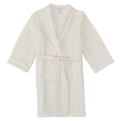 50% Polyester, 50% Recycled Polyester Luxuriously soft, shawl collar, dual hip pockets. OEKO-TEX Certified