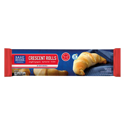 Bake House Creations Crescent Rolls bring simplicity to your kitchen. Enjoy them fresh out of the oven for breakfast or as a dinner side. They are ready in 11-13 minutes, providing a quick and delicious addition to any meal. With no artificial colors or flavors, Bake House Creations Crescent Rolls are a delightful complement to your dining experience.