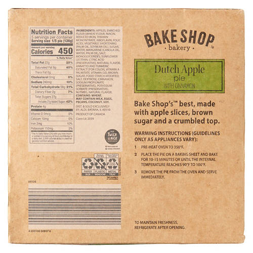 Treat yourself to something sweet with this Bake Shop Dutch Apple Pie! The rich, flavorful pie features a delicious apple cinnamon filling topped with a buttery crumble. Enjoy your slice with a scoop of vanilla ice cream and an extra sprinkle of cinnamon for the perfect dessert!