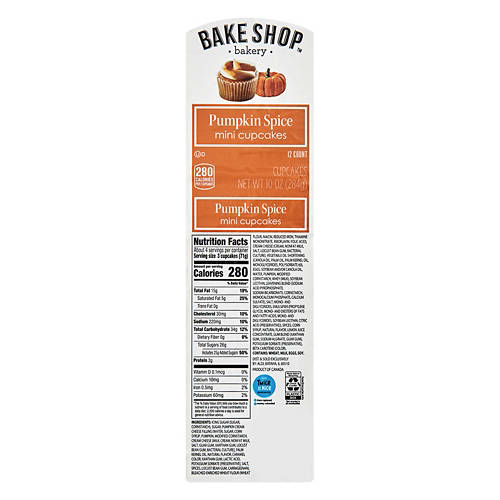 Bake Shop Pumpkin Spice Mini Cupcakes are an irresistible delight. These mini cupcakes combine moist pumpkin-flavored cake with creamy frosting, making them a perfect choice for dessert. Enjoy these delectable treats with your morning coffee or as an after-dinner indulgence. With 12 per pack, there’s plenty to share or savor alone. Indulge in the rich, seasonal flavors of Bake Shop Pumpkin Spice Mini Cupcakes.