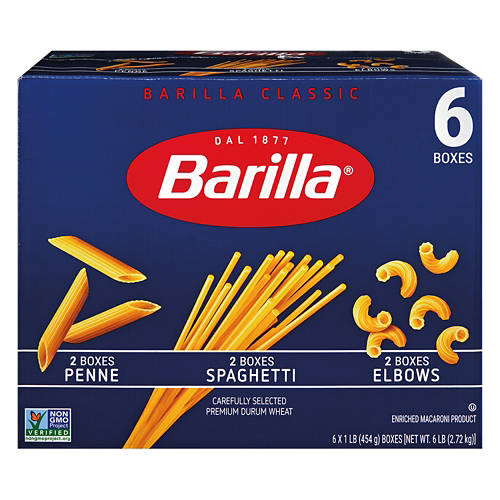 Your family will be set for weeks with this Barilla Variety Pasta Family Pack! The pack features six boxes of non-GMO verified pasta in three classic shapes: Penne, Spaghetti, and Elbows. Use yours to whip up your favorite recipes, like a classic mac 'n' cheese, spaghetti & meatballs, or a hearty penne pasta bake!