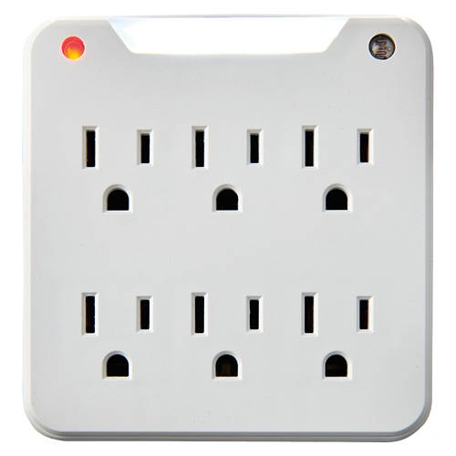 6 Outlets Lighted On/Off Switch Wall Tap includes dusk-to-dawn nightlight