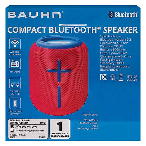 Compact Bluetooth Speaker - Red/Blue