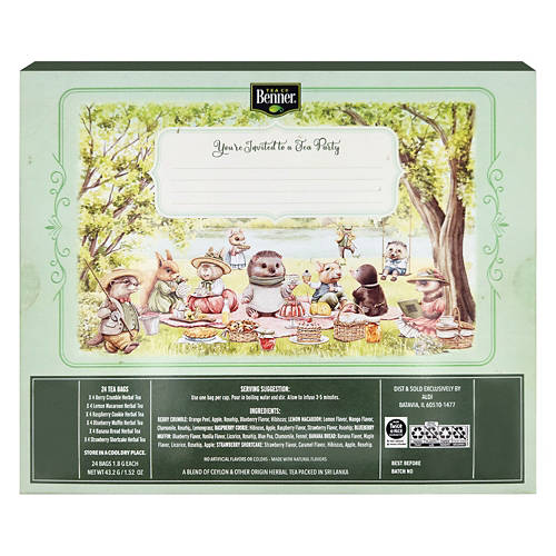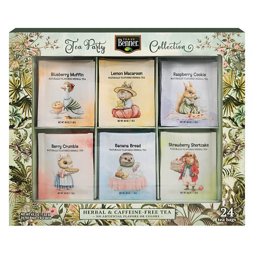 Each Gift Set Includes 24ct herbal tea bags: Berry Crumble x4 Blueberry Muffin x4 Banana Bread x4 Strawberry Shortcake x4 Raspberry Cookie x4 Lemon Macaron x4