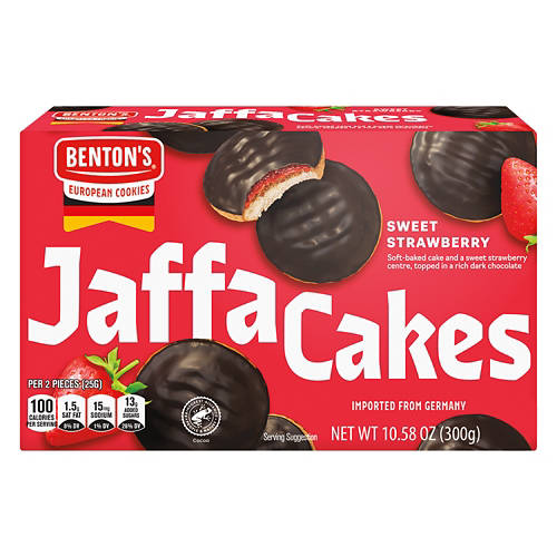 Benton's Sweet Strawberry Jaffa Cakes combine a soft-baked cake with a sweet strawberry center topped in rich dark chocolate. These delightful treats are perfect for an afternoon snack or as an after-dinner dessert. Each serving contains only 100 calories, making it a lighter option for satisfying your sweet tooth. Indulge in the irresistible flavor of Benton's Sweet Strawberry Jaffa Cakes for a deliciously unique experience.