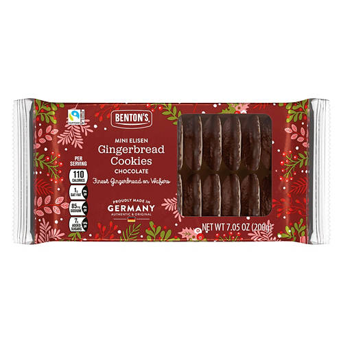 Benton's Dark Chocolate Mini Elisen Gingerbread Cookies are proudly made in Germany. Ideal for sharing during festive occasions or enjoying with a warm beverage, these cookies bring a touch of European tradition to your table. Indulge in the rich taste of Benton's Dark Chocolate Mini Elisen Gingerbread Cookies.
