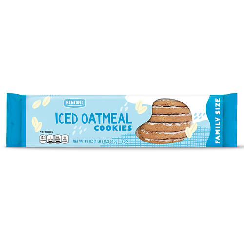 Indulge in the classic taste of Benton's Family Size Iced Oatmeal Cookies from ALDI. These delicious cookies combine the wholesome goodness of oats with a satisfyingly sweet icing on top. These cookies are sure to bring a homemade feel to your dessert table.
