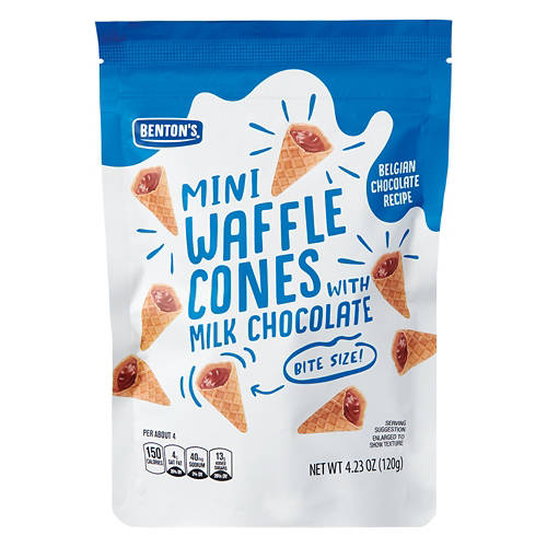 Bentons Mini Waffle Cones - Milk Chocolate are a delightful indulgence crafted with Belgian chocolate. These bite-size treats are perfect for sharing or enjoying on your own. Each cone has a satisfying crunch with a rich milk chocolate center. Great for parties or a sweet snack after dinner. Enjoy the delicious combination of crispy waffle cone and smooth chocolate.