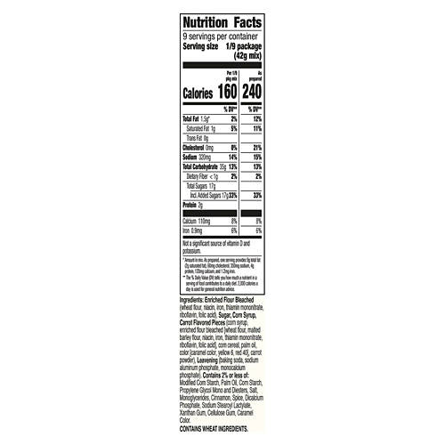 Betty Crocker Super Moist Carrot Cake Mix brings a touch of homemade goodness to your kitchen. With pudding in the mix, this cake ensures a rich, moist texture that's sure to delight. Perfect for birthday celebrations or a simple family dessert, just add the required ingredients and bake. Enjoy a delicious carrot cake with ease thanks to Betty Crocker Super Moist Carrot Cake Mix.
