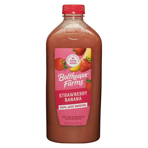 Bolthouse Farms Strawberry Banana Smoothie offers a blend of real strawberries and bananas with no sugar added. Enjoy it for breakfast, as a post-workout boost or a tasty midday refreshment. With 13 servings of fruit in every bottle, it's a delicious and easy way to get your fruit intake. Bolthouse Farms Strawberry Banana Smoothie is a flavorful choice that fits effortlessly into your daily routine.