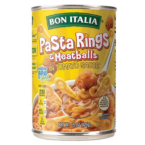 Make tonight's dinner a breeze with this Bon Italia Spaghetti Rings with Meatballs! The tender pasta rings sit in a tangy tomato sauce with protein-packed mini meatballs. Just heat yours up on the stovetop for a hearty and filling meal in minutes!
