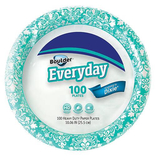 These Boulder 10" Everyday Paper Plates are the perfect choice for your next party with friends and family. Each heavy duty paper plate is microwaveable, grease resistant, and decorated with a bright pattern. No matter what's on the menu, you'll serve your guests with ease and style!