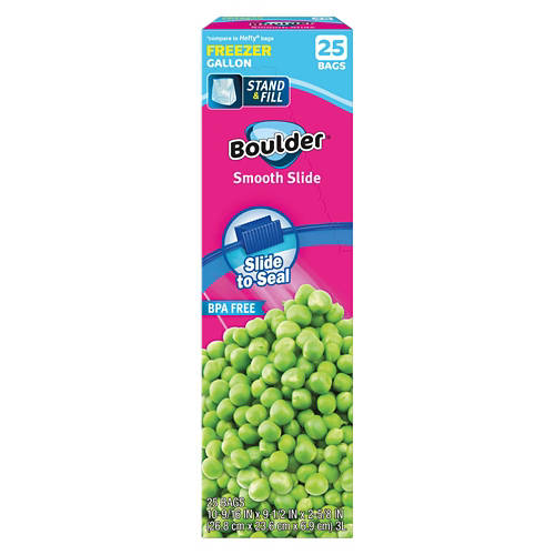 Store fruits and veggies with ease when you use these Boulder Gallon Storage Slider Bags. Each gallon sized plastic bag is BPA free and has a stand & fill design to simplify storage. With a smooth slider on top to keep things fresh, it's the perfect choice for all your family's leftovers.
