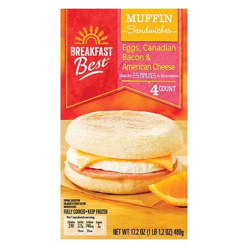 Canadian Bacon, Egg and Cheese Muffin Sandwiches, 4 count
