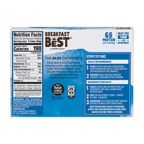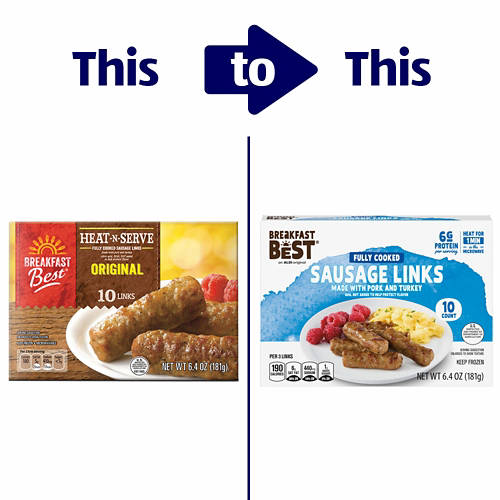 Breakfast Best Brown 'N Serve Sausage Links are your go-to for a quick, hearty breakfast. These fully cooked sausage links are made with pork and turkey, offering a savory flavor that pairs perfectly with eggs, pancakes or waffles. Just heat and serve for a satisfying meal in minutes. Ideal for busy mornings or a weekend brunch, these sausage links are a delicious addition to your breakfast routine.