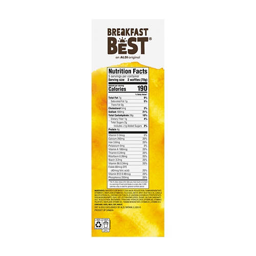 Spruce up your breakfast! Shop for Breakfast Best frozen Homestyle Waffles from ALDI. Conveniently prepared by heating in a toaster or oven, making them a perfect on-the-go option. Top with fresh fruit, syrup, whipped cream, honey, chocolate chips, and more!