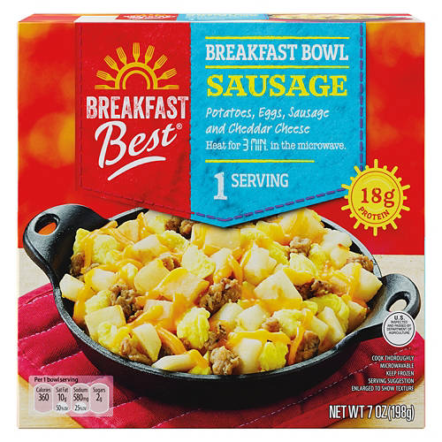 Start your day with the Breakfast Best Sausage & Gravy Breakfast Bowl. Packed with potatoes, eggs, sausage and cheddar cheese, this hearty meal is ready in just 3 minutes in the microwave. Ideal for a quick breakfast or a satisfying snack, it delivers 18g of protein per serving. Enjoy a delicious and filling meal that sets you up for success.