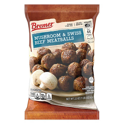 Bremer Mushroom & Swiss Beef Meatballs are a delicious addition to your meal lineup. Made with premium beef, these meatballs are oven-baked and fully cooked. Perfect for pasta, sandwiches or appetizers, they bring a savory mushroom and Swiss flavor to your table. Ready in minutes, they offer a satisfying and easy meal option. Add Bremer Mushroom & Swiss Beef Meatballs to your next meal and enjoy a flavorful experience.