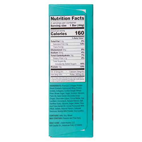 Built Cookie Dough Chunk Protein Bars deliver 15g of protein, making them a powerful choice for fueling your day. With a delicious dark chocolatey coating and natural flavors, these bars are a tasty option for a post-workout boost or an on-the-go snack. Plus, they include collagen for added benefits. Satisfy cravings and support your nutrition goals with Built Cookie Dough Chunk Protein Bars.