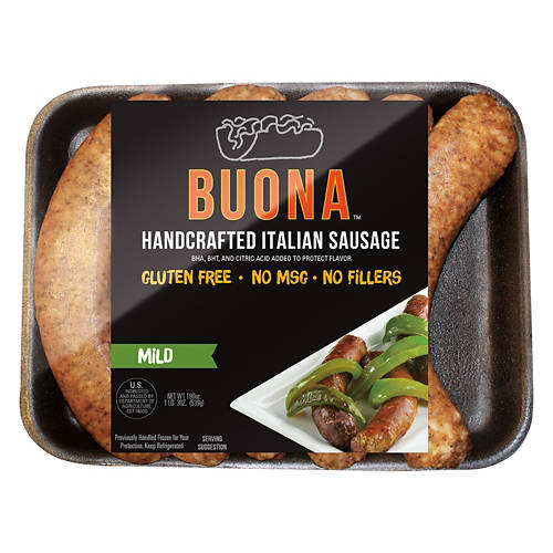 These Buona Mild Italian Sausage Links are sure to be a crowd-pleaser at your next party. The sausages are made with premium pork cuts and have a mild spice that everyone can enjoy. Grill them up to put a twist on classic barbecue or add them to an egg scramble at a potluck brunch with friends.