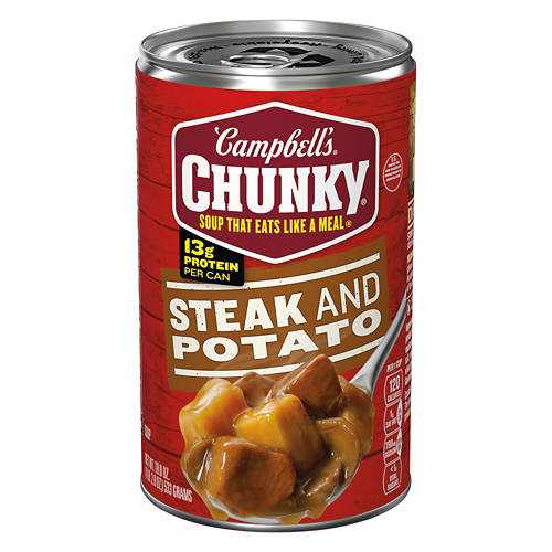 Take the guesswork out of dinner on a busy night with Campbell's Chunky Steak & Potato Soup! The hearty soup is packed with 13 grams of protein and features meaty steak cubes and filling potatoes. Just heat yours up on the stovetop for a delicious meal in minutes!