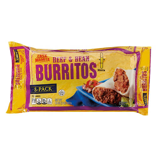 Enjoy a hearty dinner with your family with these Casa Mamita Beef and Bean Burritos! Each frozen burrito is filled with a spicy beef and bean mixture wrapped in a fluffy tortilla. Just pop them in your microwave or oven for a delicious and satisfying meal in minutes!