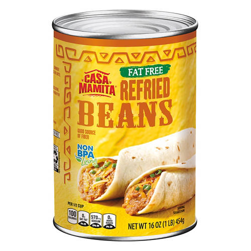 Casa Mamita Fat Free Refried Beans are the ultimate addition to your meal. With 100 calories per serving and zero saturated fat, these beans are a good source of fiber to keep you feeling satisfied. Perfect for tacos, burritos or as a side dish, they are versatile and delicious. Embrace the convenience of a tasty meal with Casa Mamita Fat Free Refried Beans and elevate your dining experience.