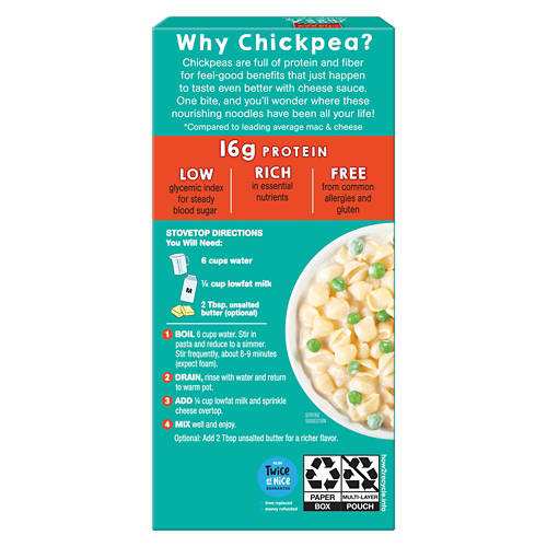 Cheese Club Chickpea Mac & Cheese Shells with White Cheddar offers a delightful twist on a classic favorite. Made with chickpea pasta, it's gluten-free and packed with 16g of protein per serving. Ready in minutes, this mac and cheese is made with real cheddar cheese, providing a rich and creamy texture. Perfect for a quick lunch or dinner, Cheese Club Chickpea Mac & Cheese Shells with White Cheddar delivers a satisfying meal that everyone will appreciate.