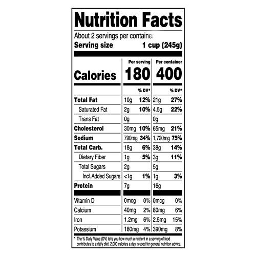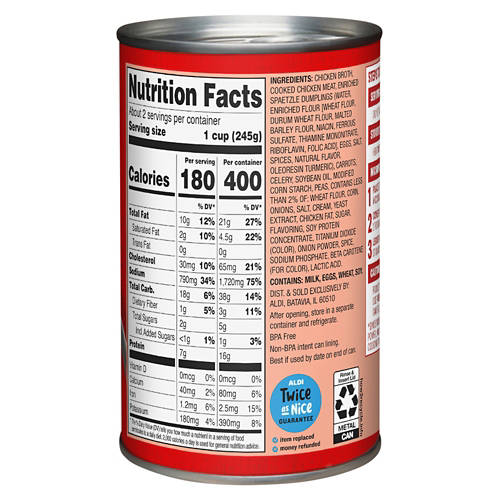 Chef's Cupboard Chicken Pot Pie Soup is packed with 16g of protein per can. This hearty soup combines tender chicken with a medley of vegetables in a creamy broth. Perfect for a quick lunch or dinner, just heat and enjoy a comforting meal that satisfies. Chef's Cupboard Chicken Pot Pie Soup is a delicious and easy choice for your busy days.