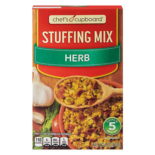 Chef's Cupboard Herb Stuffing Mix is an easy way to add flavor to your meals. Ready in just 5 minutes, this stuffing mix is perfect for quick weeknight dinners. Use it to stuff poultry or as a side dish for your favorite meals. Make dinner time delicious with Chef's Cupboard Herb Stuffing Mix.