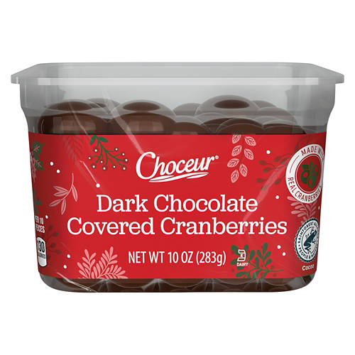 Choceur Dark Chocolate Covered Cranberries offer a delightful blend of rich chocolate and sweet cranberries. These treats are perfect for a quick indulgence. Enjoy them as a snack or add a handful to your favorite trail mix for an extra touch of sweetness. Made with real cranberries, Choceur Dark Chocolate Covered Cranberries are a tasty way to satisfy your sweet cravings.