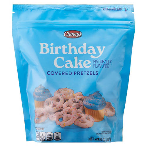 Clancy's Birthday Cake Pretzels are a delightful fusion of salty and sweet, naturally flavored for a delicious treat. Each pretzel is coated in a birthday cake flavor, making them a fun addition to party spreads or a unique snack to enjoy anytime. With a satisfying crunch and a sprinkle of festive joy, these pretzels are sure to please. Indulge in Clancy's Birthday Cake Pretzels for a memorable and tasty experience.