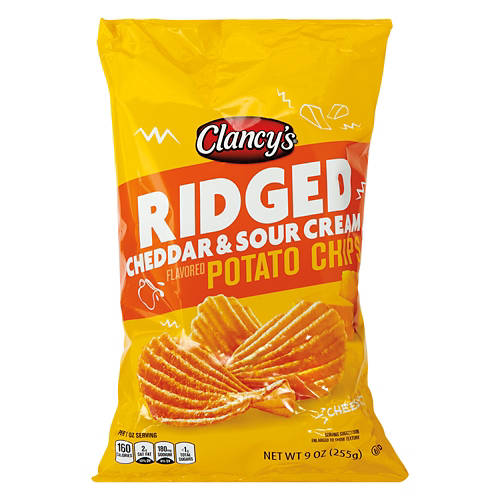 Clancy's Ridged Cheddar & Sour Cream Flavored Potato Chips pack a delicious punch with every bite. These ridged chips offer a bold cheddar and sour cream flavor that makes them a standout choice for parties, picnics or simply enjoying at home. Pair them with your favorite dip or enjoy them straight from the bag. Satisfy your cravings with the rich taste and satisfying crunch of Clancy's Ridged Cheddar & Sour Cream Flavored Potato Chips.