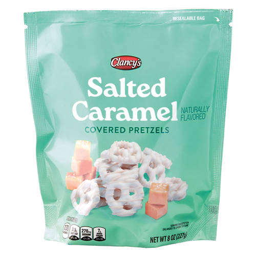 Clancy's Salted Caramel Flavored Covered Pretzels are naturally flavored for an irresistible taste. These pretzels combine the perfect balance of sweet and salty, making them a delightful addition to any gathering. Enjoy them as a quick snack, a party treat or a sweet ending to a meal. Clancy's Salted Caramel Flavored Covered Pretzels are a tasty choice for any occasion.